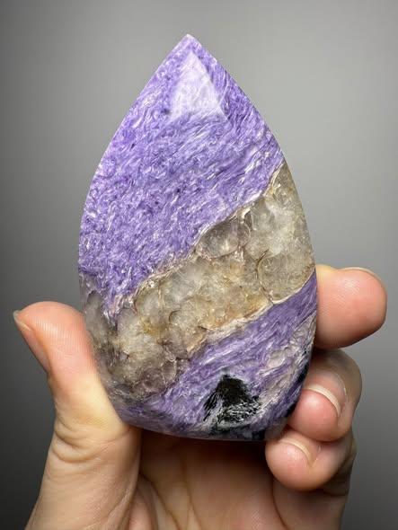 Charoïet is het kristal van transformatie dat de ziel ondersteunt om vrees te overwinnen. Het stimuleert innnerlijke visioenen en spirituele inzichten. Het helpt om grote veranderingen sneller te verwerken.