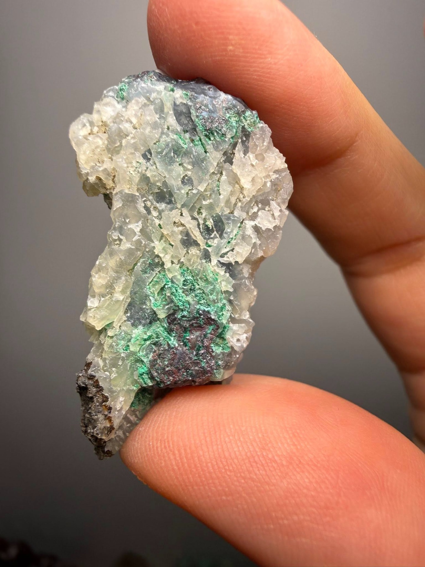 Chrysolcolla & native koper in Chalcedoon van de Bacan-eilanden uit Indonesië b