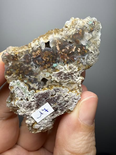 Chrysolcolla & native koper in Chalcedoon van de Bacan-eilanden uit Indonesië