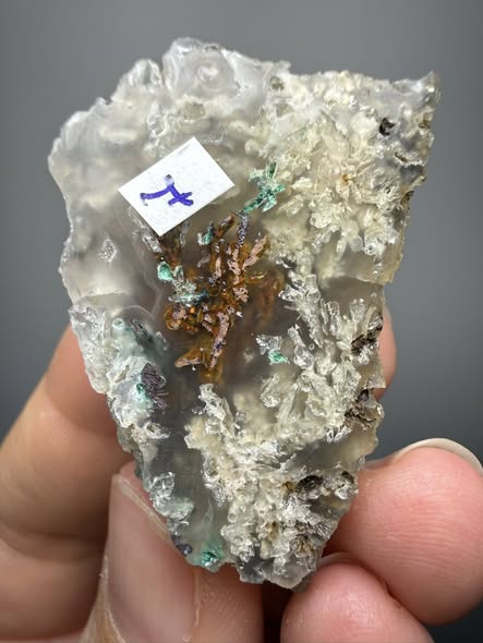 Chrysolcolla & native koper in Chalcedoon van de Bacan-eilanden uit Indonesië