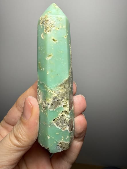 Chrysopraas houdt de ruimte vast bij meditatie, stimuleert creativiteit en brengt je talenten naar boven.