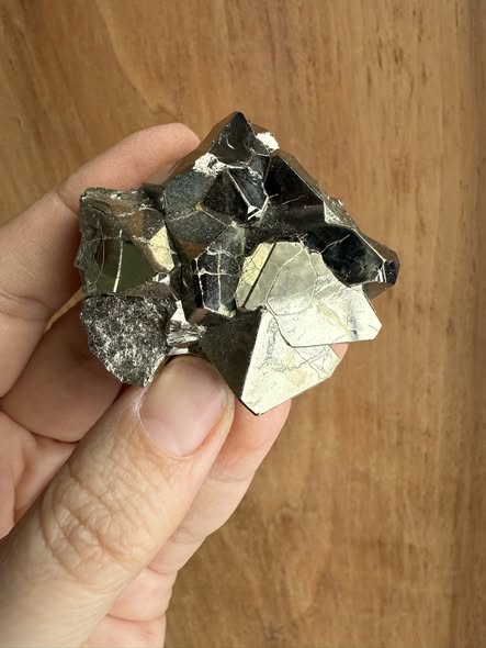 Natuurlijke geometische 1e kwaliteit Pyriet uit PeruVele van deze stukjes Pyriet hebben 'records' en 'barcodes' !