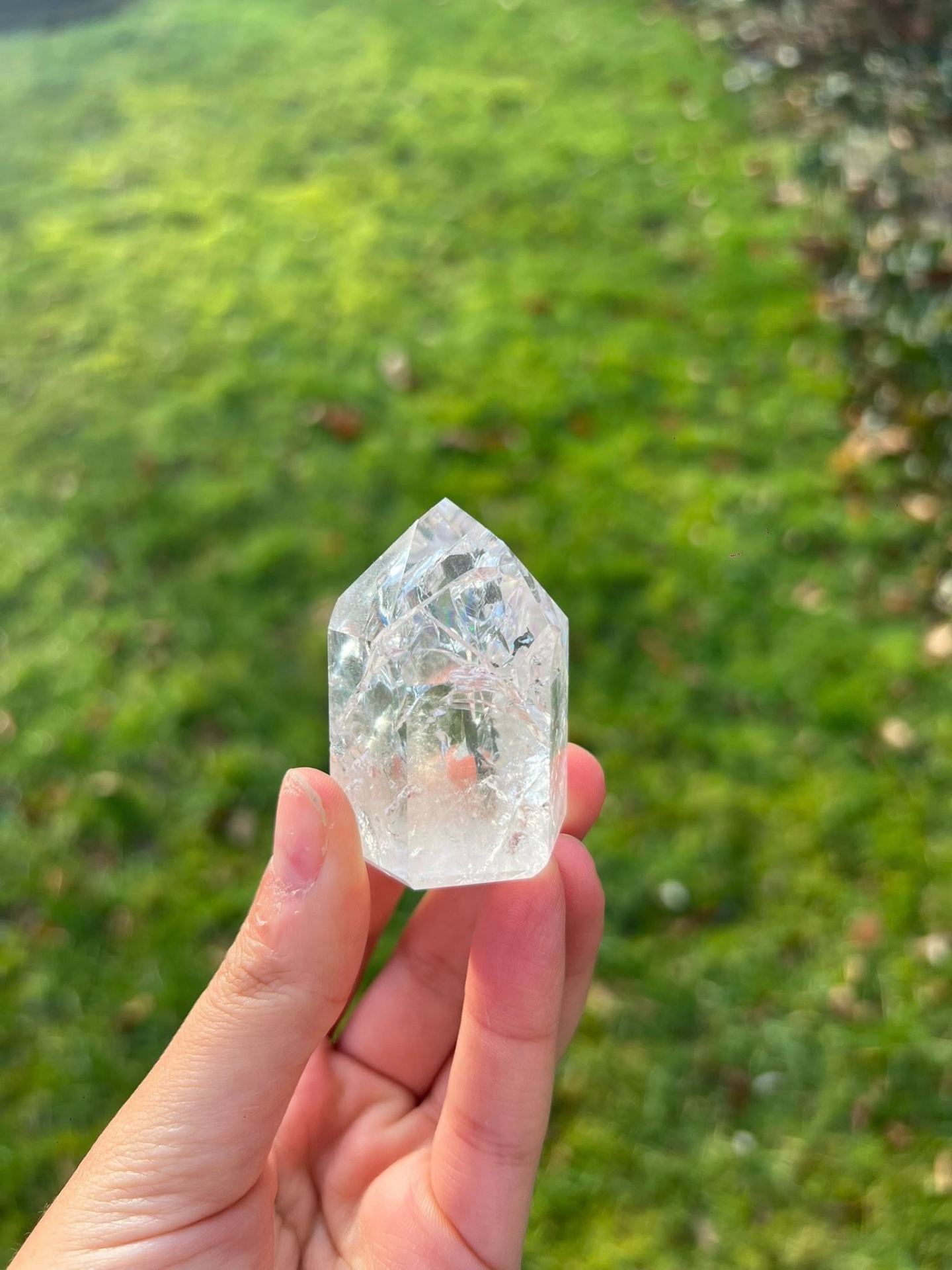 Dit bijzonder kristal combineert de krachtige werking van de klassieke bergkristal met een zijdezachte, matte afwerking die doet denken aan een bevroren winterlandschap.