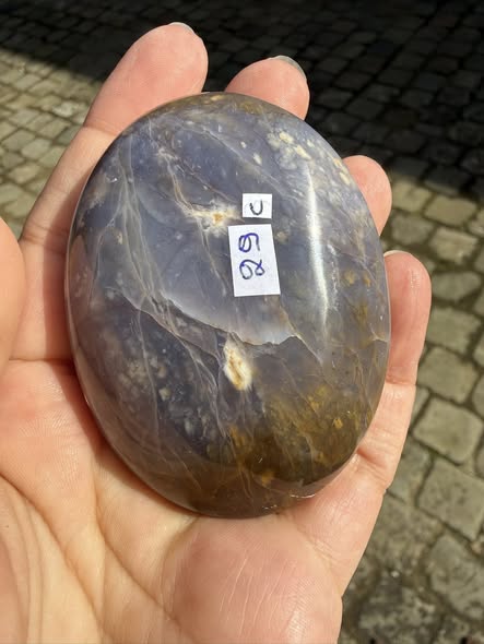 “Deze partij prachtig Paarse Chalcedoon uit Indonesië vertelt met dat zij een reflectie van de kosmos zijn. Het zijn mini-Galaxies in kleine stukjes op de Aarde. Hartegroet, ann”