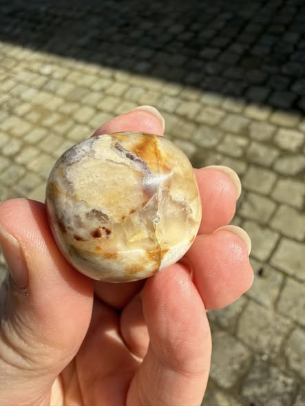 “Deze partij prachtig Paarse Chalcedoon uit Indonesië vertelt met dat zij een reflectie van de kosmos zijn. Het zijn mini-Galaxies in kleine stukjes op de Aarde. Hartegroet, ann”