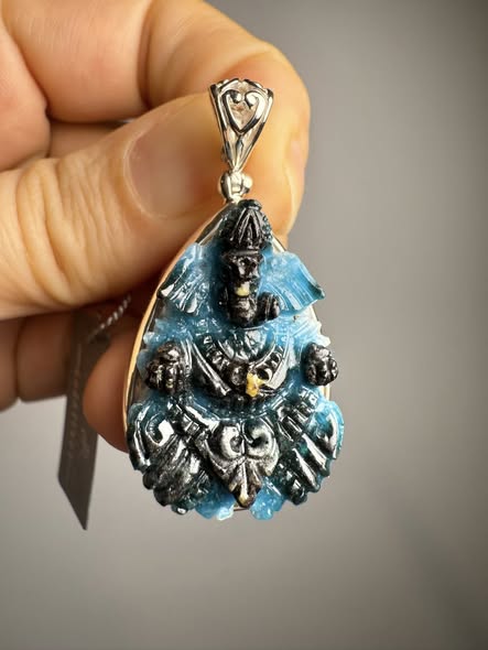 Powerfull Blue Ice Glaceriet GHANESHA in sterling zilver hanger (126b)