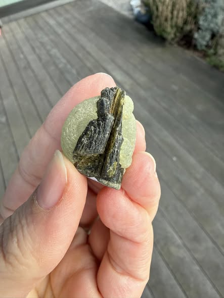 Prehniet met Epidootnaaldjes is een zachte, voedende steen die onvoorwaardelijke liefde uitstraalt. Epidoot bevordert je perceptie en intuïtie, geeft persoonlijke kracht en helpt je spiritueel te ontwaken. Prehniet brengt vreugde in je hart en rust in je hoofd. Deze combinatie brengt innerlijke heling en helpt je je ware zelf te ontdekken en naar de toekomst te kijken.