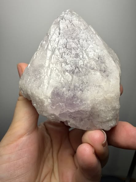 Dit is een nieuwe soort Amethist die heel recent in Brazilië is gevonden. Deze Amethist zonder naam noemt straks misschien 'trigonic Amethyst'. We zijn heel blij dat we deze in Het Huis van A mogen ontvangen. Deze grote kristallen zijn opgebouwd uit ontelbare driehoekige records en Bron-coderingen, ook wel barcodes genoemd, met dimensionale portalen.