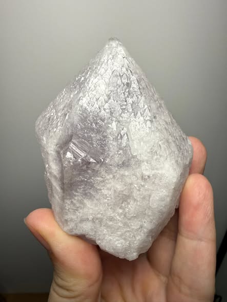 Dit is een nieuwe soort Amethist die heel recent in Brazilië is gevonden. Deze Amethist zonder naam noemt straks misschien 'trigonic Amethyst'. We zijn heel blij dat we deze in Het Huis van A mogen ontvangen. Deze grote kristallen zijn opgebouwd uit ontelbare driehoekige records en Bron-coderingen, ook wel barcodes genoemd, met dimensionale portalen.