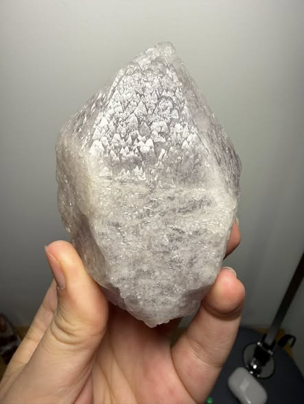 Dit is een nieuwe soort Amethist die heel recent in Brazilië is gevonden. Deze Amethist zonder naam noemt straks misschien 'trigonic Amethyst'. We zijn heel blij dat we deze in Het Huis van A mogen ontvangen. Deze grote kristallen zijn opgebouwd uit ontelbare driehoekige records en Bron-coderingen, ook wel barcodes genoemd, met dimensionale portalen.