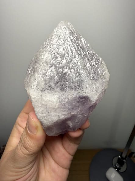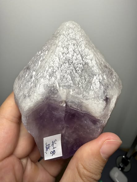 Dit is een nieuwe soort Amethist die heel recent in Brazilië is gevonden. Deze Amethist zonder naam noemt straks misschien 'trigonic Amethyst'. We zijn heel blij dat we deze in Het Huis van A mogen ontvangen. Deze grote kristallen zijn opgebouwd uit ontelbare driehoekige records en Bron-coderingen, ook wel barcodes genoemd, met dimensionale portalen.